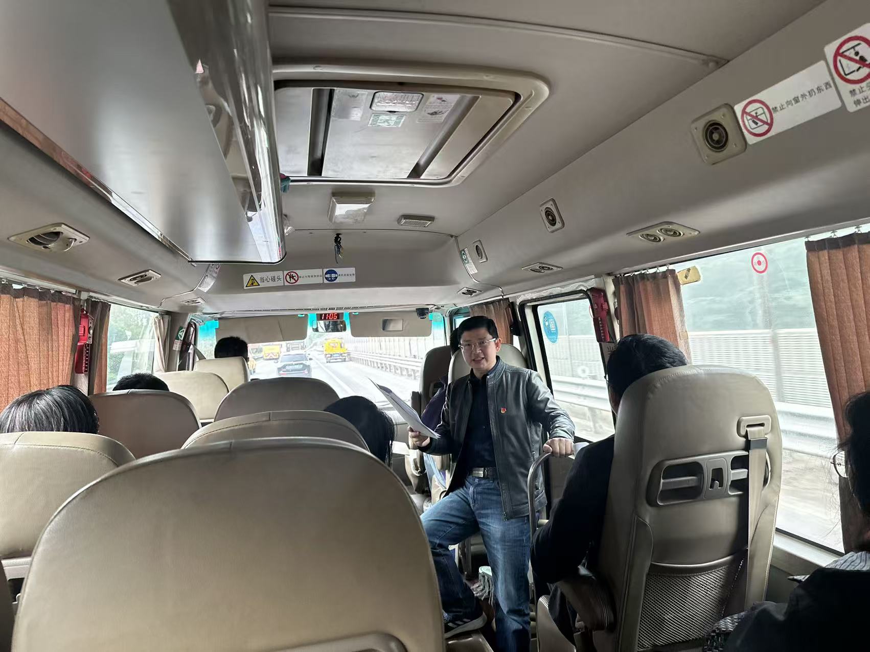 在前往活动地点的大巴车上,一场别开生面的“移动课堂”同步开启。党支部副书记朱恩泽带领全体党员集中学习党的二十届四中全会精神,重点解读了“十五五”规划建议中关于教育科技人才一体化发展、高质量发展等核心内容,明确了“十五五”时期作为基本实现社会主义现代化的关键阶段,研究生教育应主动对接国家战略需求,发挥更大的智力支撑和人才支撑的作用。随后,全体党员共同学习了《习近平谈治国理政》第五卷有关重要论述和习近平总书记在中共中央政治局第二十二次集体学习时的重要讲话精神。